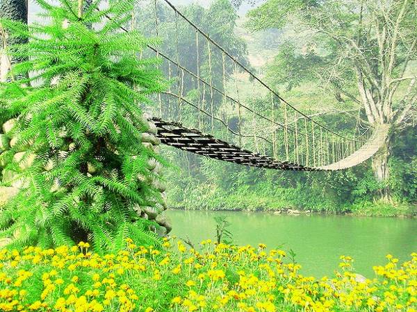Sapa có cây cầu làm bằng mây vắt ngang qua dòng suối Mường Hoa thơ mộng. Từ đường lớn, muốn đến cầu Mây, bạn có thể đi theo con đường mới với nhiều dốc và cua. Cây cầu nổi tiếng làm bằng dây mây này chỉ dành để phục vụ cho du lịch.
